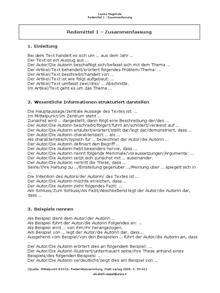 Https Www Zhaw Ch Storage Linguistik Institute Zentren Ilc Upload Ecomundo Szenario 7 Schriftliche Aktivitaet Textarbeit Bernardelli Pdf from Pdf redemittel vortrag soren fabisch academia edu / wir erklären dir den aufbau und alle relevanten details einer zusammenfassung anhand eines. In einer zusammenfassung gibst du den wichtigsten inhalt eines textes mit eigenen worten wieder. Redemittel und tipps zum schreiben. Zum schluß bringt der autor eine zusammenfassung. Allgemeine tipps und hinweise redemittel für den kommentar finden sie bei den redemitteln zur diskussion (siehe. Essay redemittel / redemittel und tipps zum schreiben. Einige redemittel, die bei der c1 prüfung des goethe instituts verwendet werden können. Die im anhang befindlichen karten, auf denen sich eingangsphrasen für die schüler/innen tragen anschließend die drei benutzten phrasen in ihre liste „redemittel ein.